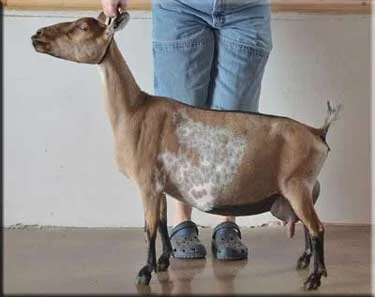 Ragnar’s dam Anahid is the littermate sister to the 2017 National Champion Old Mountain Farm Merriment. Then in 2018 Anahid’s Sire Bold Elk was named the ADGA Premier Sire and her paternal half-sister Old Mountain Farm Shy Elk was Reserve National Champion. Anahid is extremely dairy and sharp like many Old Mountain Farm does, she is high and wide in the rear udder and has incredible balance throughout.